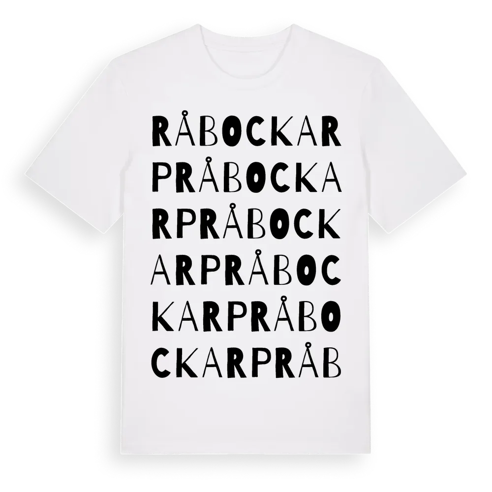 Råbockarp ordlek t-shirt är inspirerad av byn Råbockarp i Skåne län, Sverige. Tröjan är designad för dig som har en speciell koppling till platsen – oavsett om du bor här, har rötterna här eller bara älskar Råbockarp.