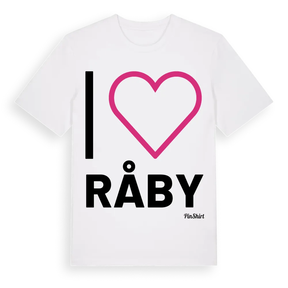 Det klassiska "I ❤ Råby"-motivet i stort format som täcker hela bröstet. För dig som vill visa kärleken till Råby på riktigt. Premium bomull, unisex – från byn Råby i Skåne län.