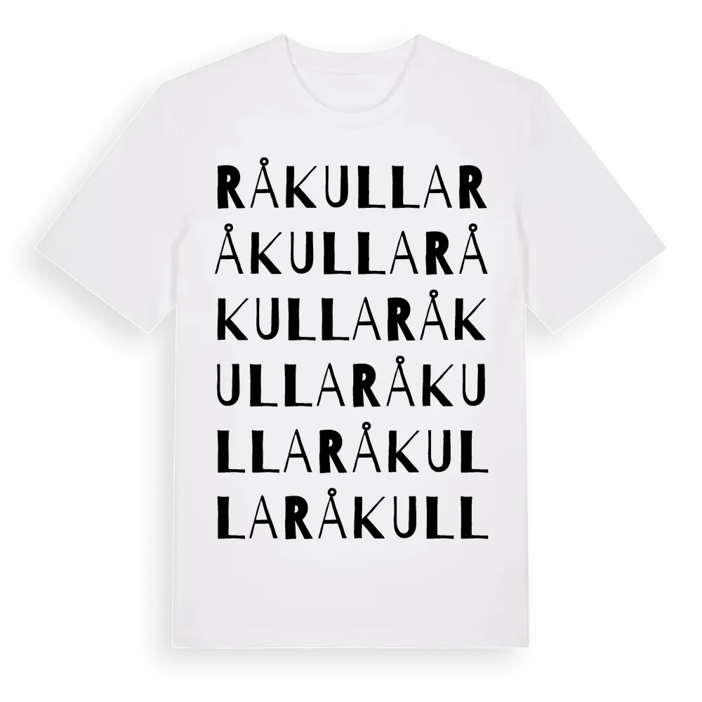 Råkulla ordlek t-shirt är inspirerad av Råkulla i Skåne län, Sverige. Tröjan är designad för dig som har en speciell koppling till platsen – oavsett om du bor här, har rötterna här eller bara älskar Råkulla.