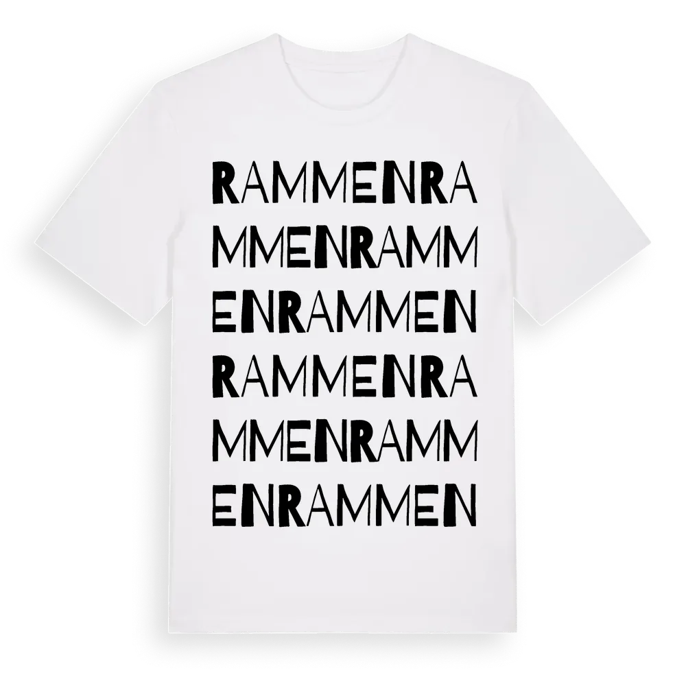Rammen ordlek t-shirt är inspirerad av byn Rammen i Skåne län, Sverige. Tröjan är designad för dig som har en speciell koppling till platsen – oavsett om du bor här, har rötterna här eller bara älskar Rammen.