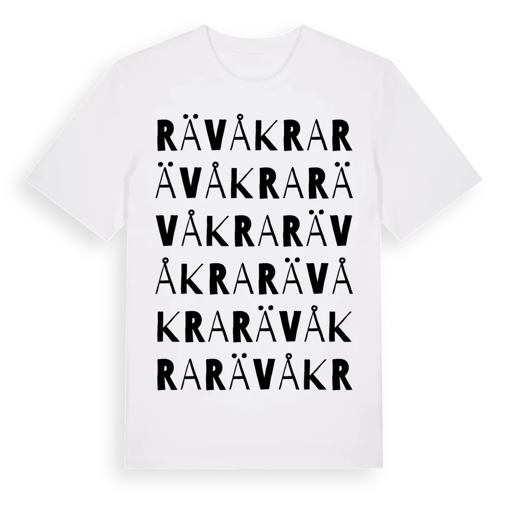 Rävåkra ordlek t-shirt är inspirerad av Rävåkra i Skåne län, Sverige. Tröjan är designad för dig som har en speciell koppling till platsen – oavsett om du bor här, har rötterna här eller bara älskar Rävåkra.