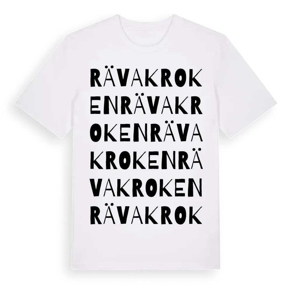 Rävakroken ordlek t-shirt är inspirerad av byn Rävakroken i Skåne län, Sverige. Tröjan är designad för dig som har en speciell koppling till platsen – oavsett om du bor här, har rötterna här eller bara älskar Rävakroken.