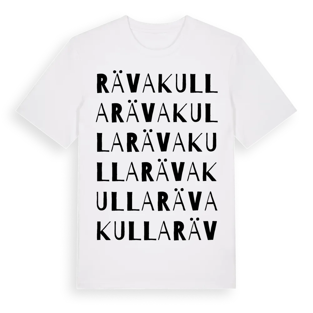 Rävakulla ordlek t-shirt är inspirerad av Rävakulla i Skåne län, Sverige. Tröjan är designad för dig som har en speciell koppling till platsen – oavsett om du bor här, har rötterna här eller bara älskar Rävakulla.