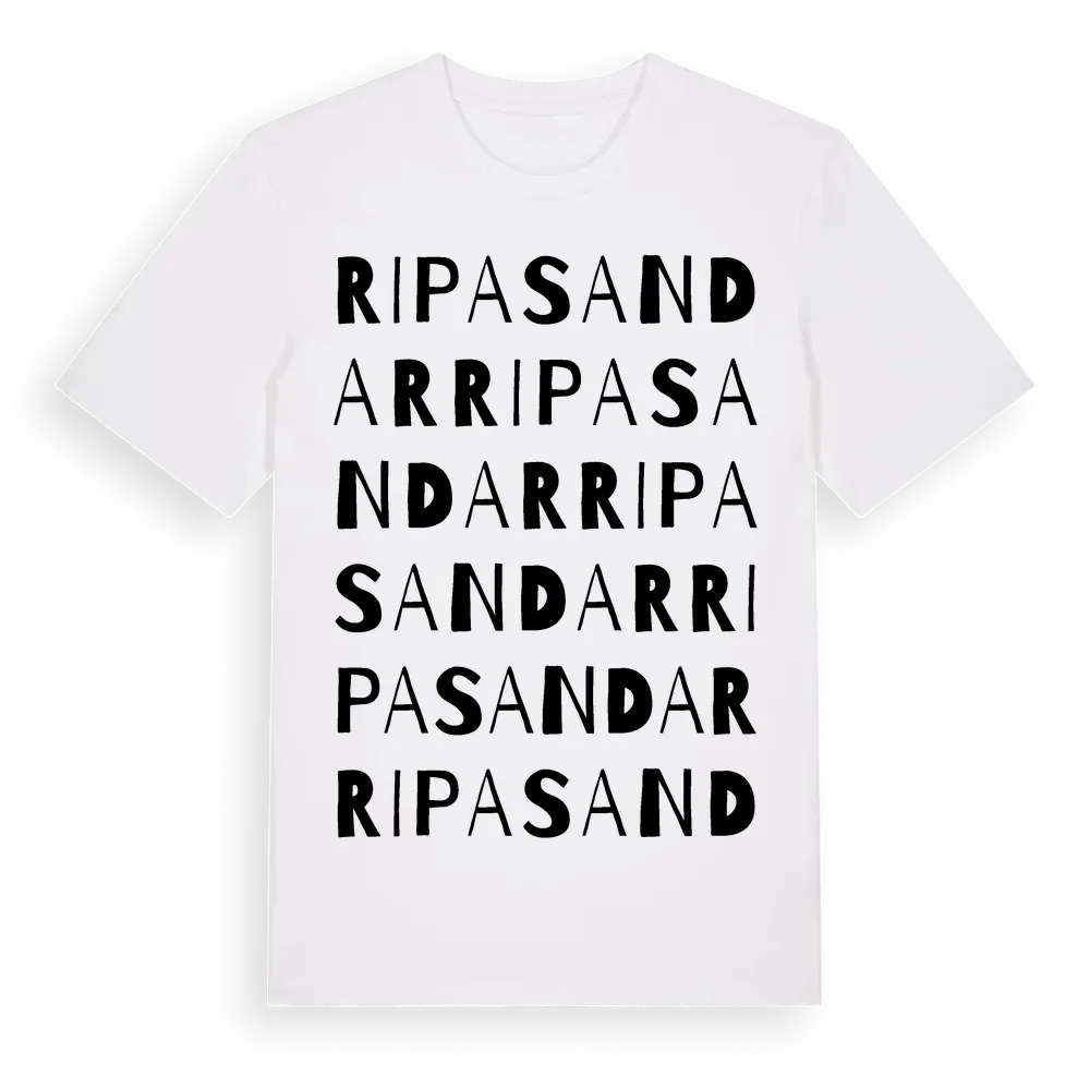Ripa Sandar ordlek t-shirt är inspirerad av Ripa Sandar i Skåne län, Sverige. Tröjan är designad för dig som har en speciell koppling till platsen – oavsett om du bor här, har rötterna här eller bara älskar Ripa Sandar.