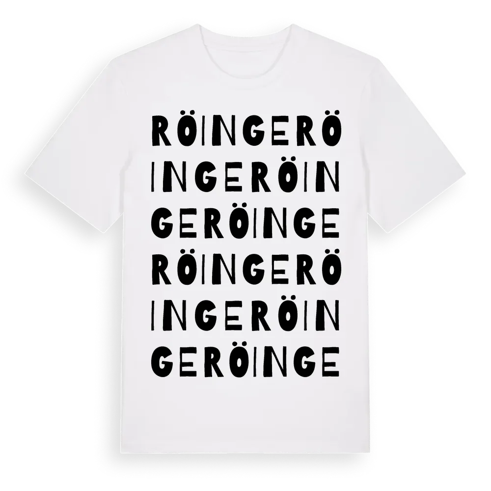 Röinge ordlek t-shirt är inspirerad av stadsdelen Röinge i Skåne län, Sverige. Tröjan är designad för dig som har en speciell koppling till platsen – oavsett om du bor här, har rötterna här eller bara älskar Röinge.