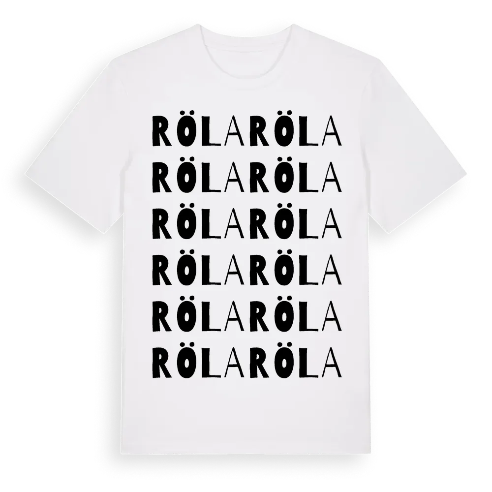 Röla ordlek t-shirt är inspirerad av Röla i Skåne län, Sverige. Tröjan är designad för dig som har en speciell koppling till platsen – oavsett om du bor här, har rötterna här eller bara älskar Röla.