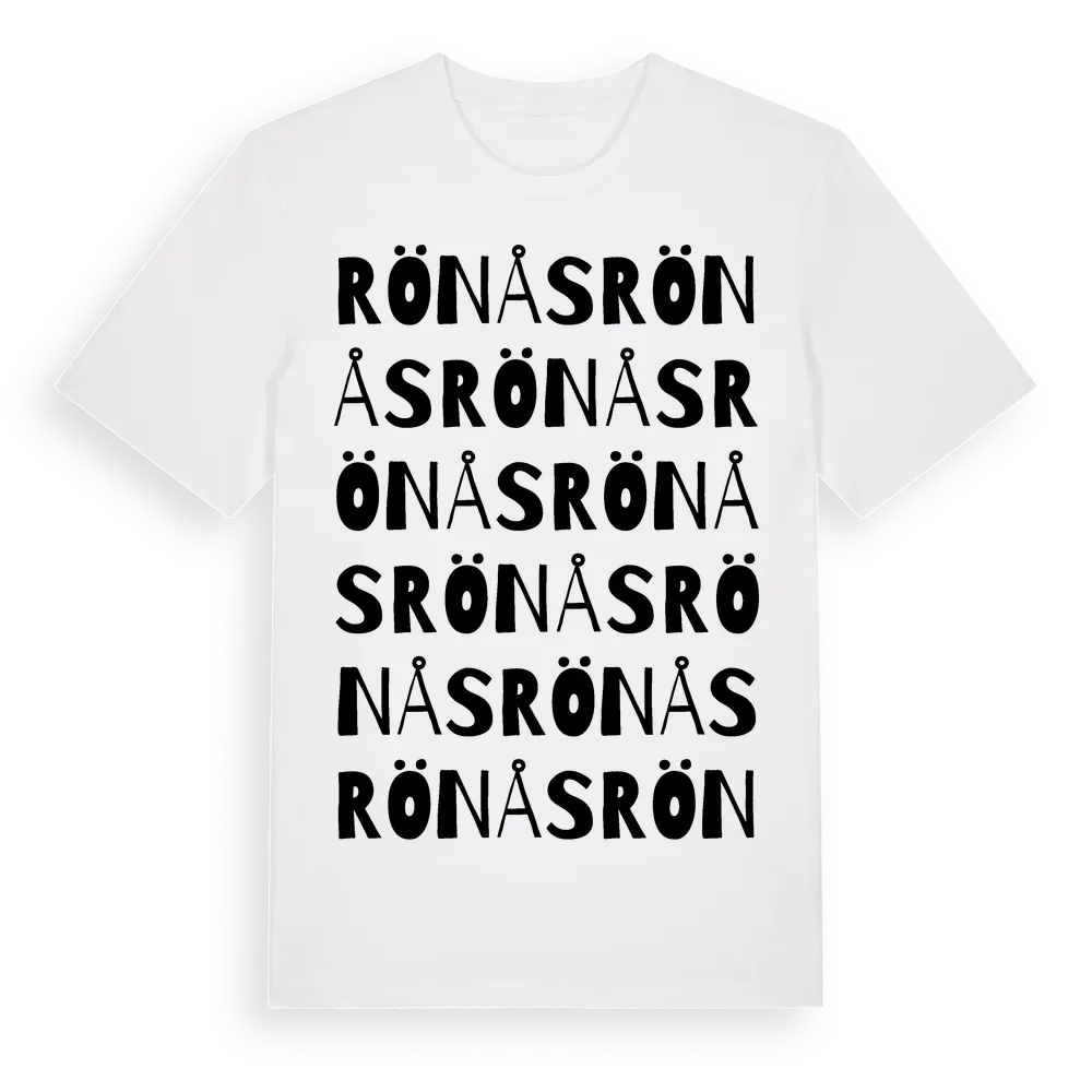 Rönås ordlek t-shirt är inspirerad av byn Rönås i Skåne län, Sverige. Tröjan är designad för dig som har en speciell koppling till platsen – oavsett om du bor här, har rötterna här eller bara älskar Rönås.