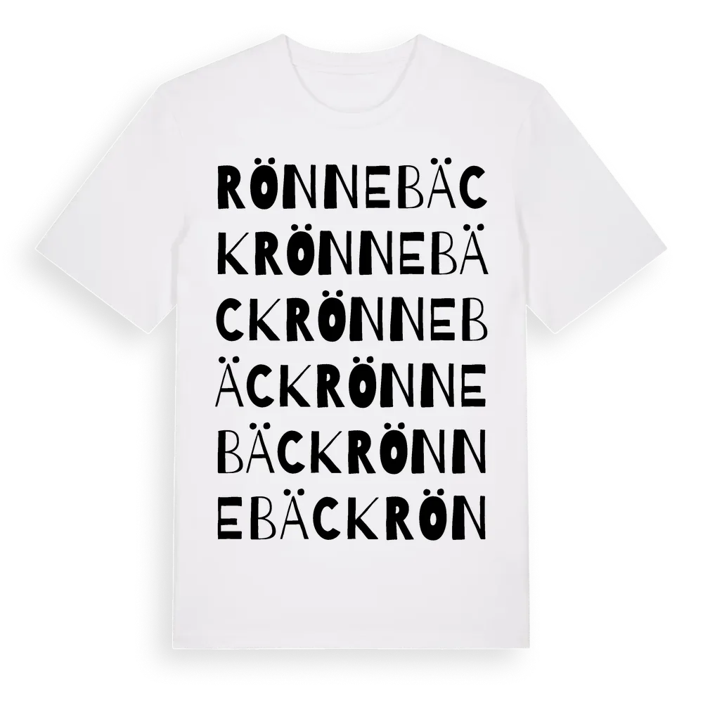 Rönnebäck ordlek t-shirt är inspirerad av Rönnebäck i Skåne län, Sverige. Tröjan är designad för dig som har en speciell koppling till platsen – oavsett om du bor här, har rötterna här eller bara älskar Rönnebäck.