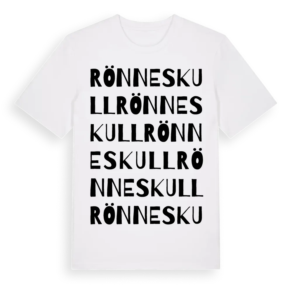 Rönneskull ordlek t-shirt är inspirerad av Rönneskull i Skåne län, Sverige. Tröjan är designad för dig som har en speciell koppling till platsen – oavsett om du bor här, har rötterna här eller bara älskar Rönneskull.