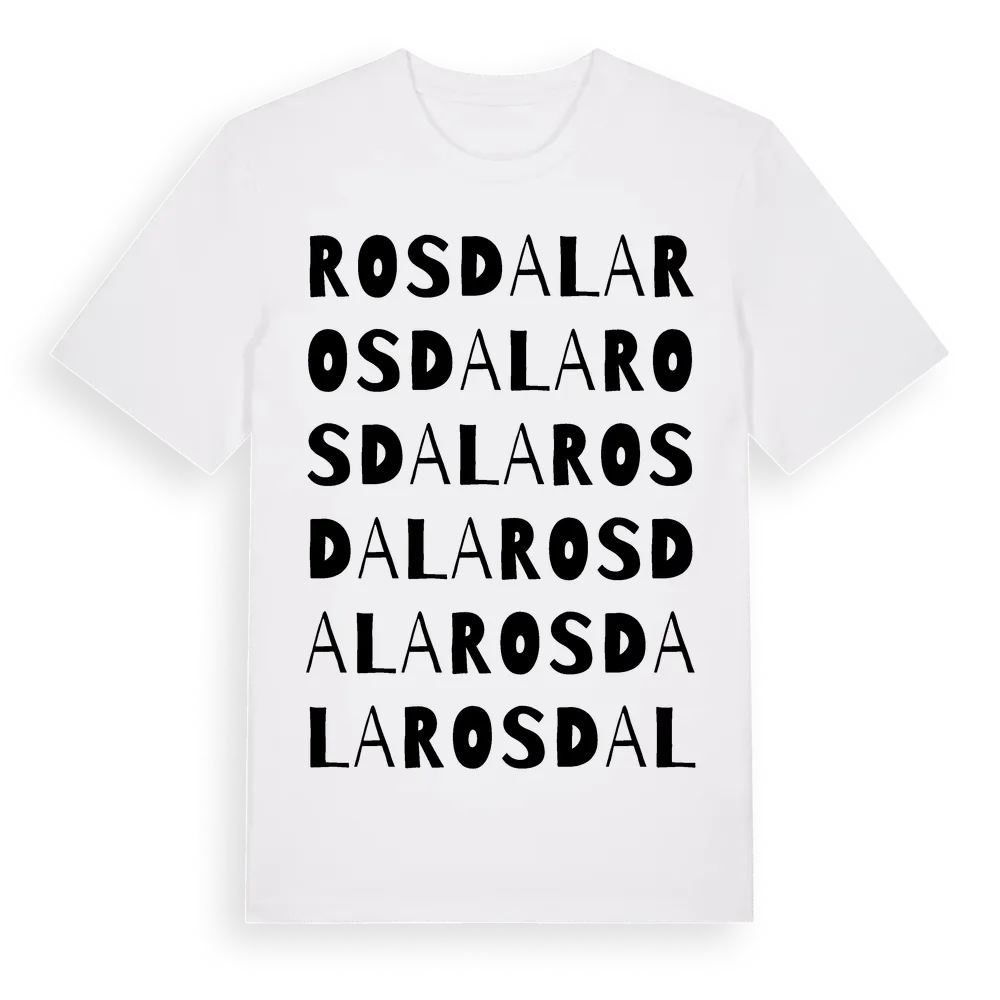 Rosdala ordlek t-shirt är inspirerad av byn Rosdala i Skåne län, Sverige. Tröjan är designad för dig som har en speciell koppling till platsen – oavsett om du bor här, har rötterna här eller bara älskar Rosdala.