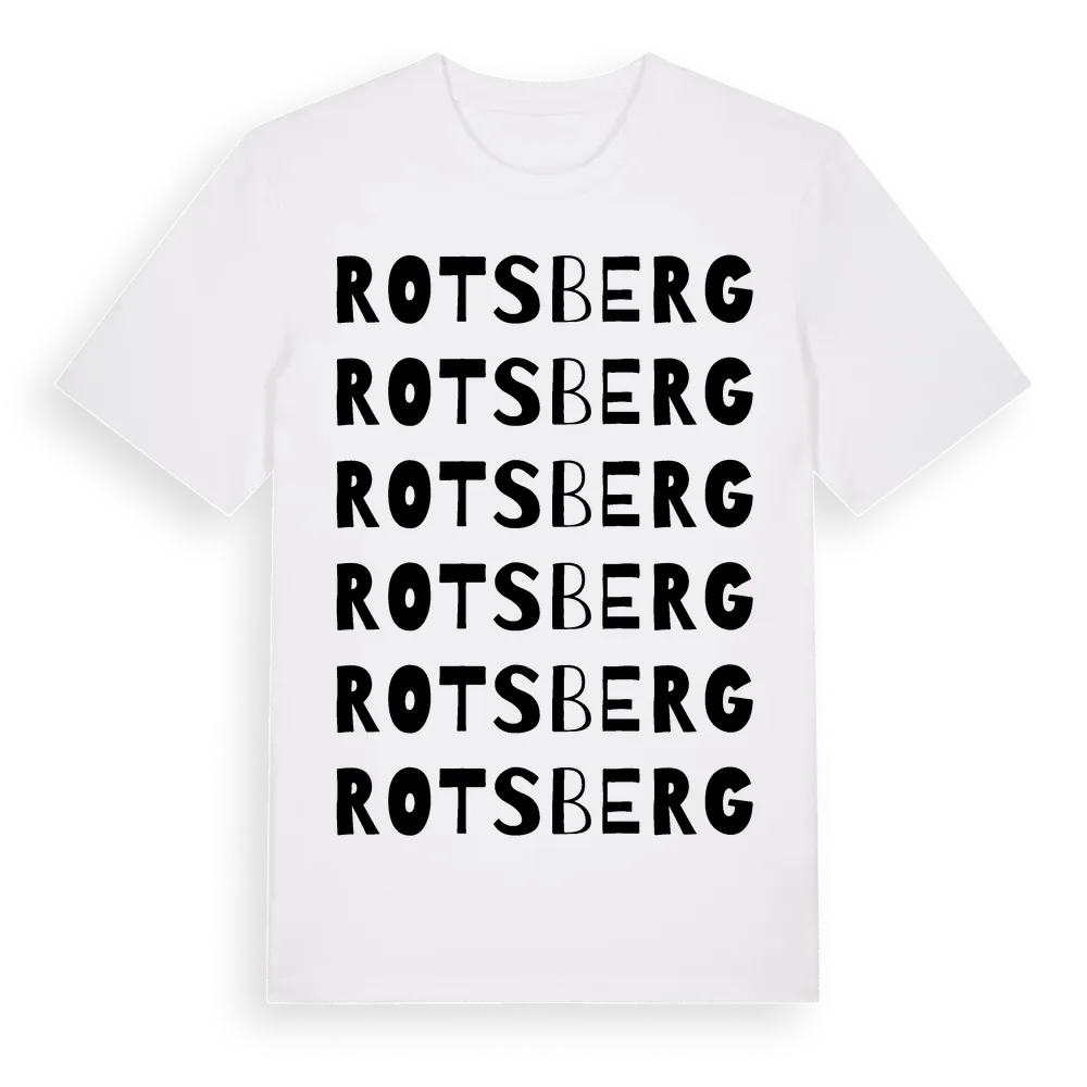Rotsberg ordlek t-shirt är inspirerad av Rotsberg i Skåne län, Sverige. Tröjan är designad för dig som har en speciell koppling till platsen – oavsett om du bor här, har rötterna här eller bara älskar Rotsberg.