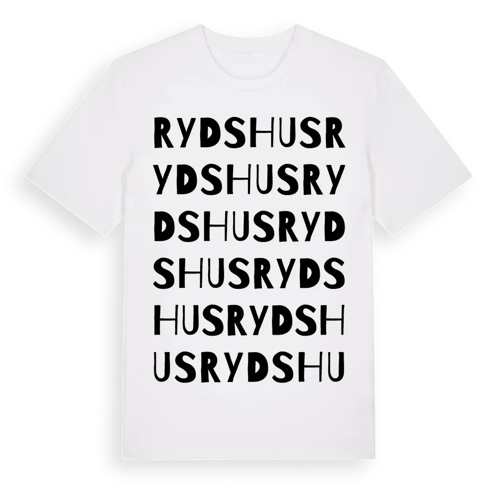 Rydshus ordlek t-shirt är inspirerad av Rydshus i Skåne län, Sverige. Tröjan är designad för dig som har en speciell koppling till platsen – oavsett om du bor här, har rötterna här eller bara älskar Rydshus.