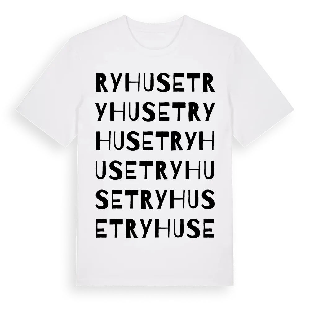Ryhuset ordlek t-shirt är inspirerad av Ryhuset i Skåne län, Sverige. Tröjan är designad för dig som har en speciell koppling till platsen – oavsett om du bor här, har rötterna här eller bara älskar Ryhuset.