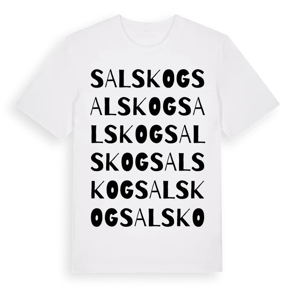 Salskog ordlek t-shirt är inspirerad av byn Salskog i Skåne län, Sverige. Tröjan är designad för dig som har en speciell koppling till platsen – oavsett om du bor här, har rötterna här eller bara älskar Salskog.