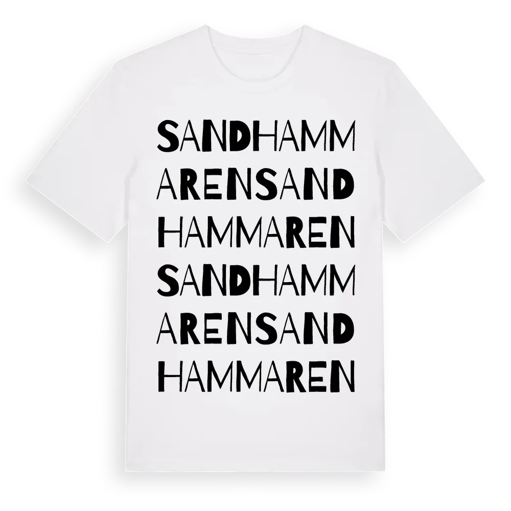 Sandhammaren ordlek t-shirt är inspirerad av byn Sandhammaren i Skåne län, Sverige. Tröjan är designad för dig som har en speciell koppling till platsen – oavsett om du bor här, har rötterna här eller bara älskar Sandhammaren.