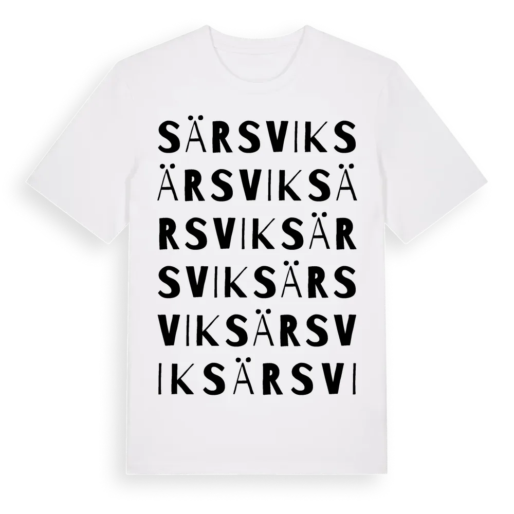 Särsvik ordlek t-shirt är inspirerad av byn Särsvik i Skåne län, Sverige. Tröjan är designad för dig som har en speciell koppling till platsen – oavsett om du bor här, har rötterna här eller bara älskar Särsvik.