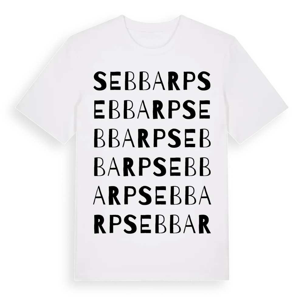 Sebbarp ordlek t-shirt är inspirerad av Sebbarp i Skåne län, Sverige. Tröjan är designad för dig som har en speciell koppling till platsen – oavsett om du bor här, har rötterna här eller bara älskar Sebbarp.