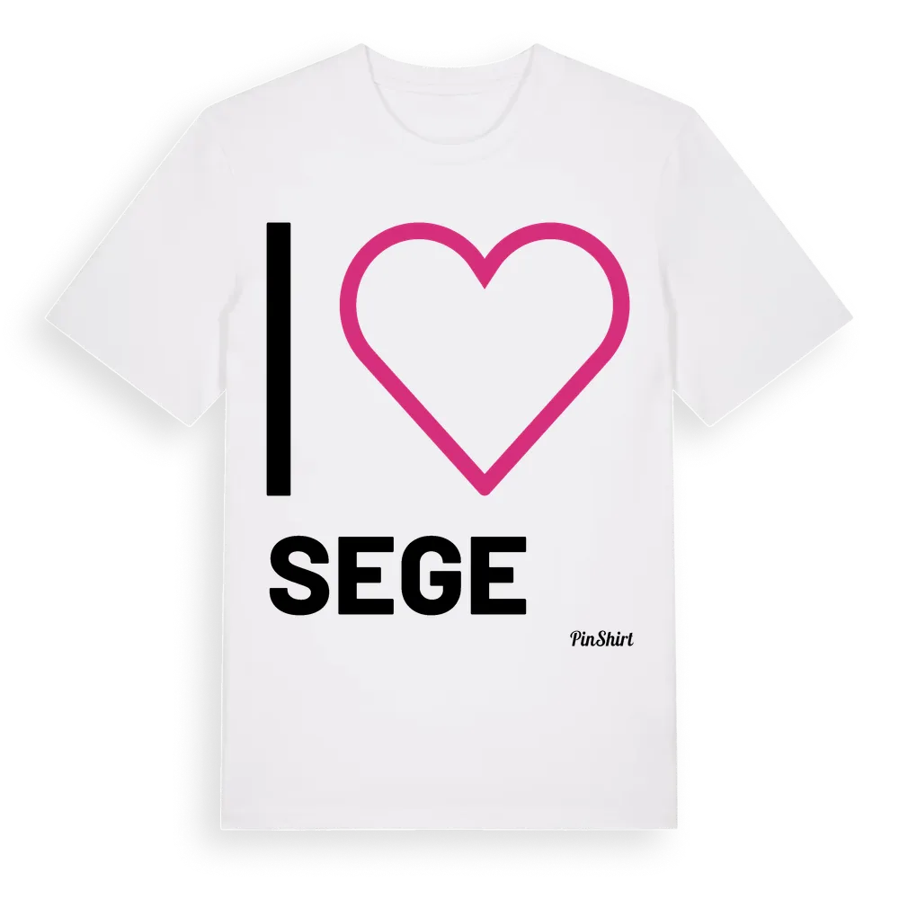 Det klassiska "I ❤ Sege"-motivet i stort format som täcker hela bröstet. För dig som vill visa kärleken till Sege på riktigt. Premium bomull, unisex – från byn Sege i Skåne län.