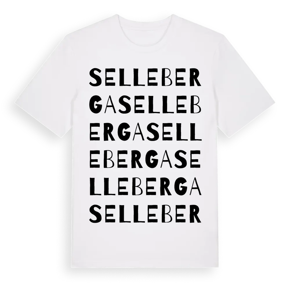 Selleberga ordlek t-shirt är inspirerad av Selleberga i Skåne län, Sverige. Tröjan är designad för dig som har en speciell koppling till platsen – oavsett om du bor här, har rötterna här eller bara älskar Selleberga.