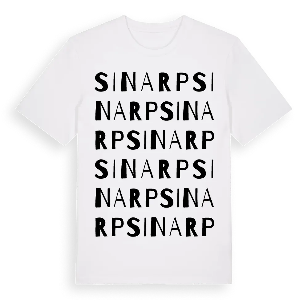 Sinarp ordlek t-shirt är inspirerad av byn Sinarp i Skåne län, Sverige. Tröjan är designad för dig som har en speciell koppling till platsen – oavsett om du bor här, har rötterna här eller bara älskar Sinarp.