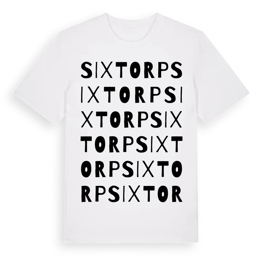 En ordlek byggd på Sixtorps namn. Subtilt och klurig – ett motiv som bara de som verkligen känner platsen fullt ut förstår. Premium bomull, unisex – från Sixtorp i Skåne län.