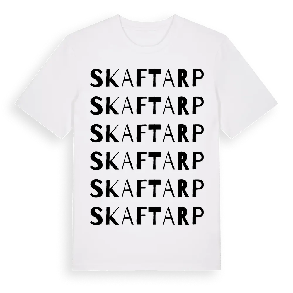 Skaftarp ordlek t-shirt är inspirerad av byn Skaftarp i Skåne län, Sverige. Tröjan är designad för dig som har en speciell koppling till platsen – oavsett om du bor här, har rötterna här eller bara älskar Skaftarp.