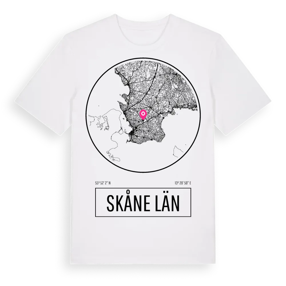 Skåne Län t-shirt är inspirerad av Skåne Län i Skåne län, Sverige. Tröjan är designad för dig som har en speciell koppling till platsen – oavsett om du bor här, har rötterna här eller bara älskar Skåne Län.