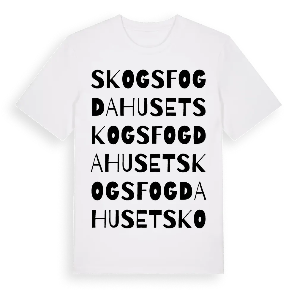 Skogsfogdahuset ordlek t-shirt är inspirerad av Skogsfogdahuset i Skåne län, Sverige. Tröjan är designad för dig som har en speciell koppling till platsen – oavsett om du bor här, har rötterna här eller bara älskar Skogsfogdahuset.