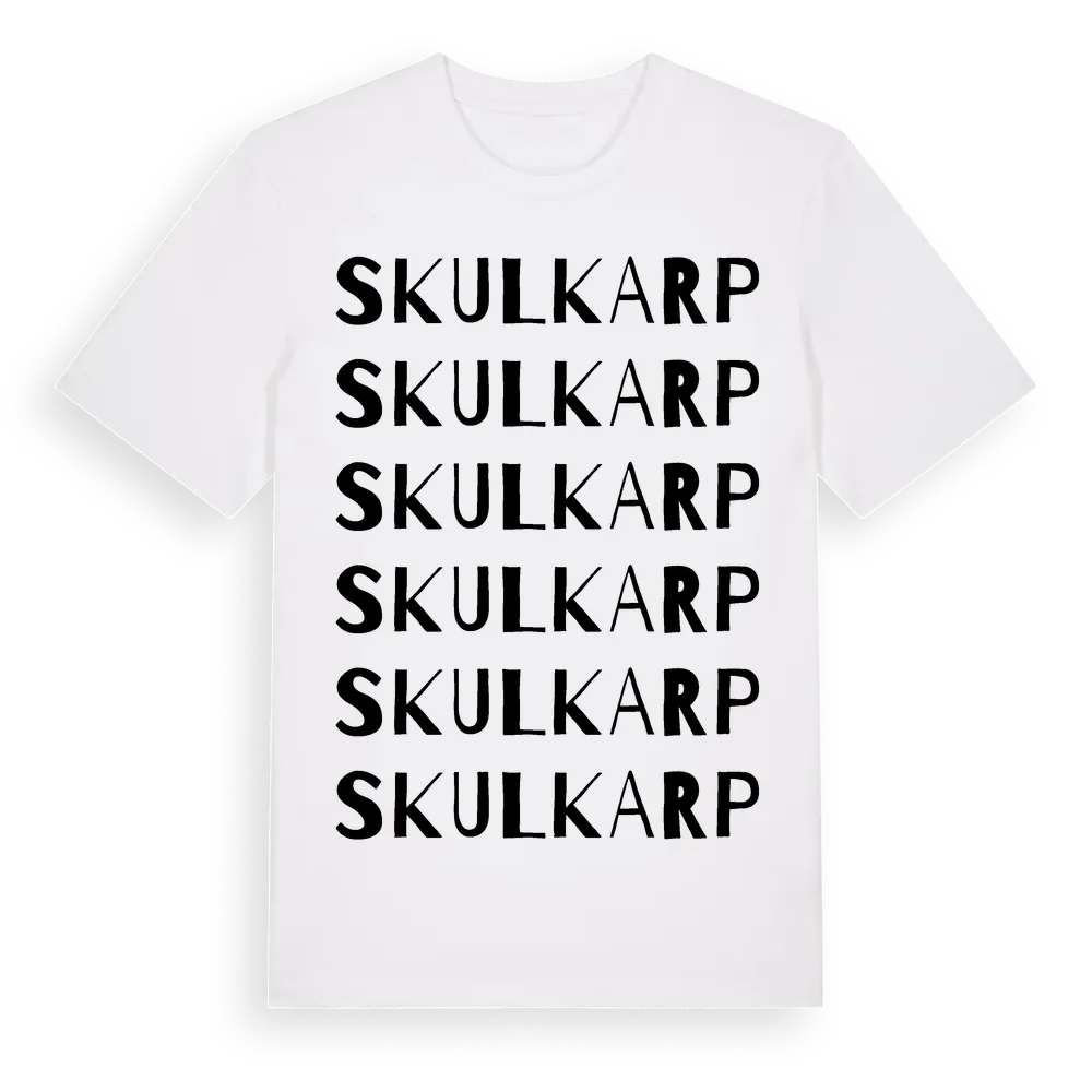 Skulkarp ordlek t-shirt är inspirerad av byn Skulkarp i Skåne län, Sverige. Tröjan är designad för dig som har en speciell koppling till platsen – oavsett om du bor här, har rötterna här eller bara älskar Skulkarp.