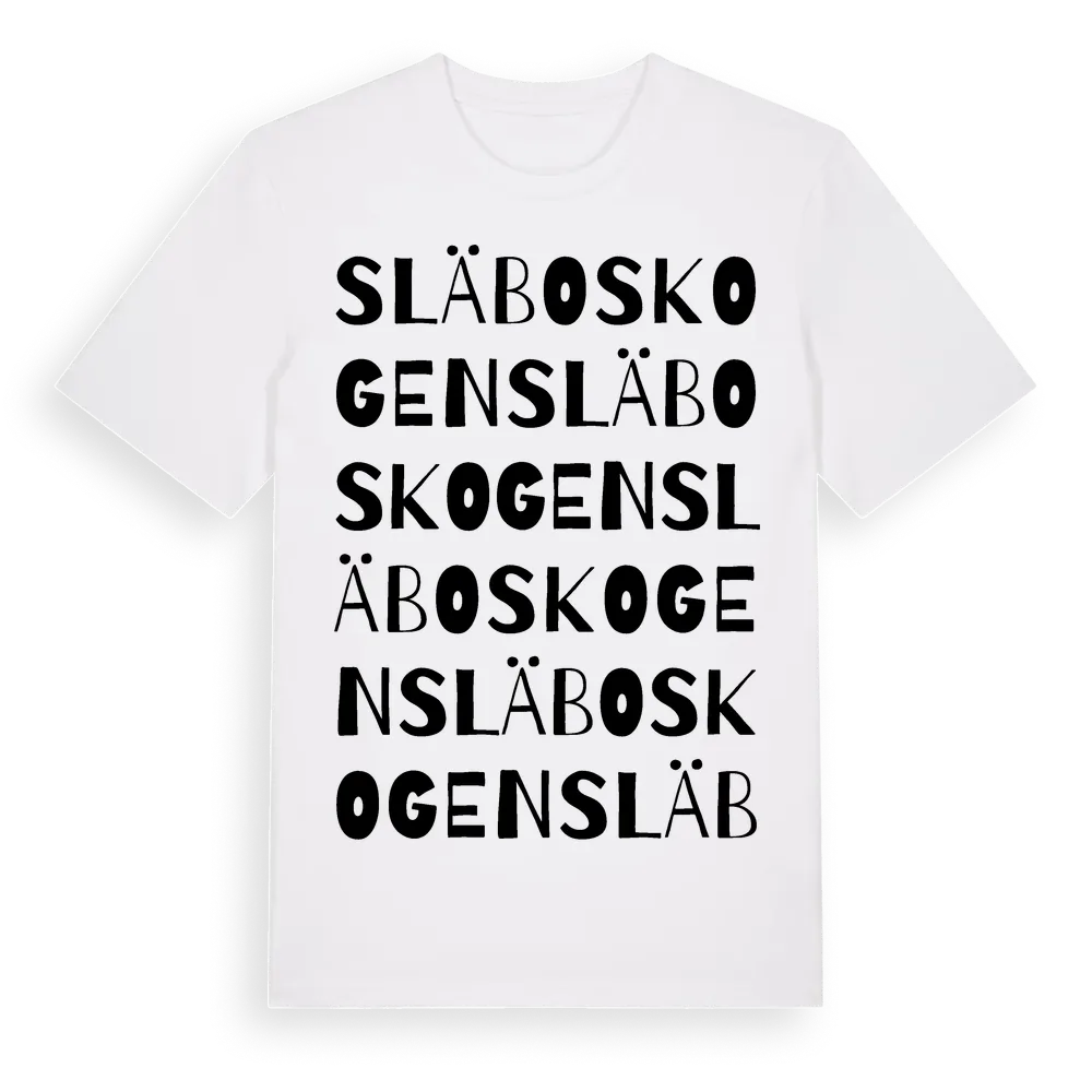 Släboskogen ordlek t-shirt är inspirerad av Släboskogen i Skåne län, Sverige. Tröjan är designad för dig som har en speciell koppling till platsen – oavsett om du bor här, har rötterna här eller bara älskar Släboskogen.