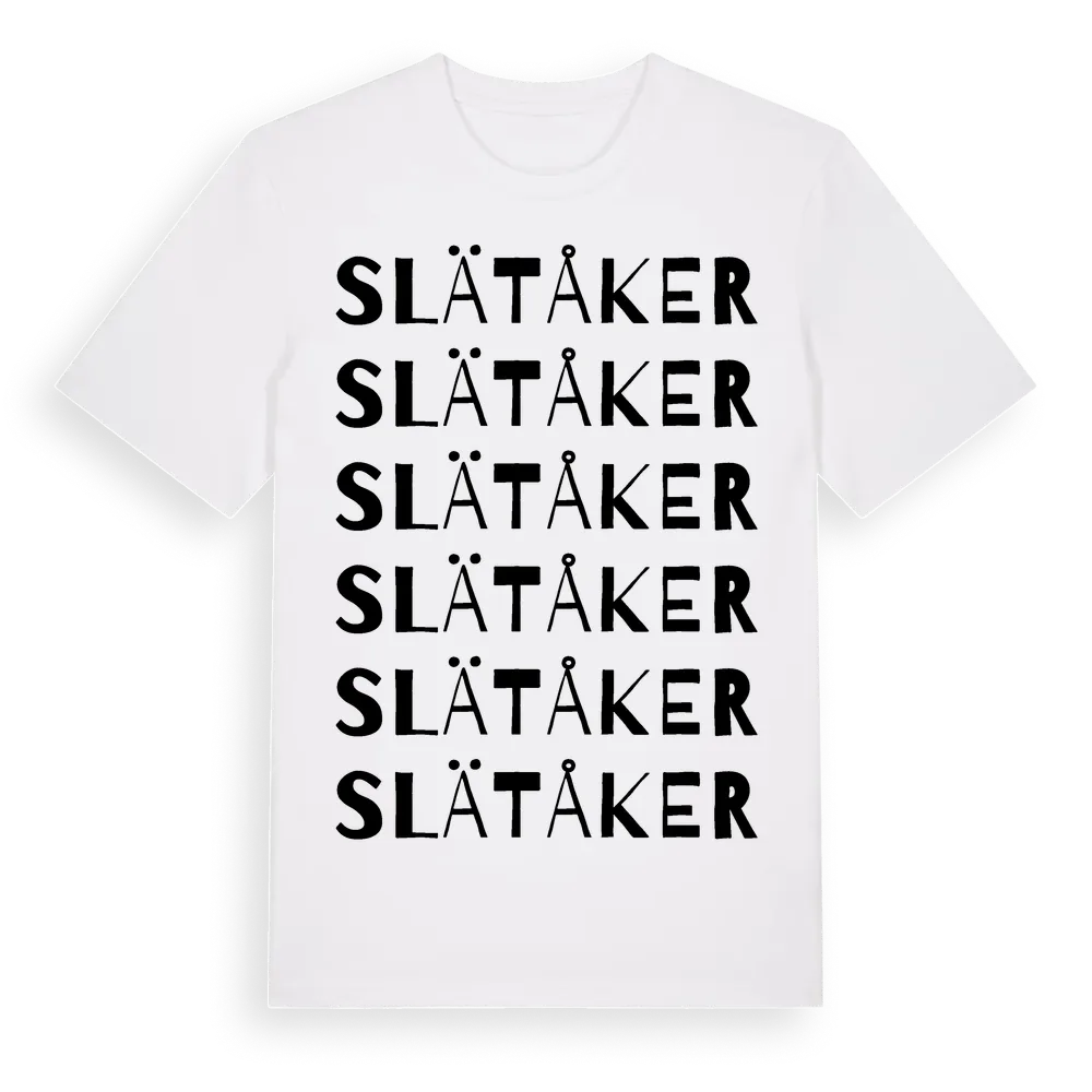 Slätåker ordlek t-shirt är inspirerad av Slätåker i Skåne län, Sverige. Tröjan är designad för dig som har en speciell koppling till platsen – oavsett om du bor här, har rötterna här eller bara älskar Slätåker.