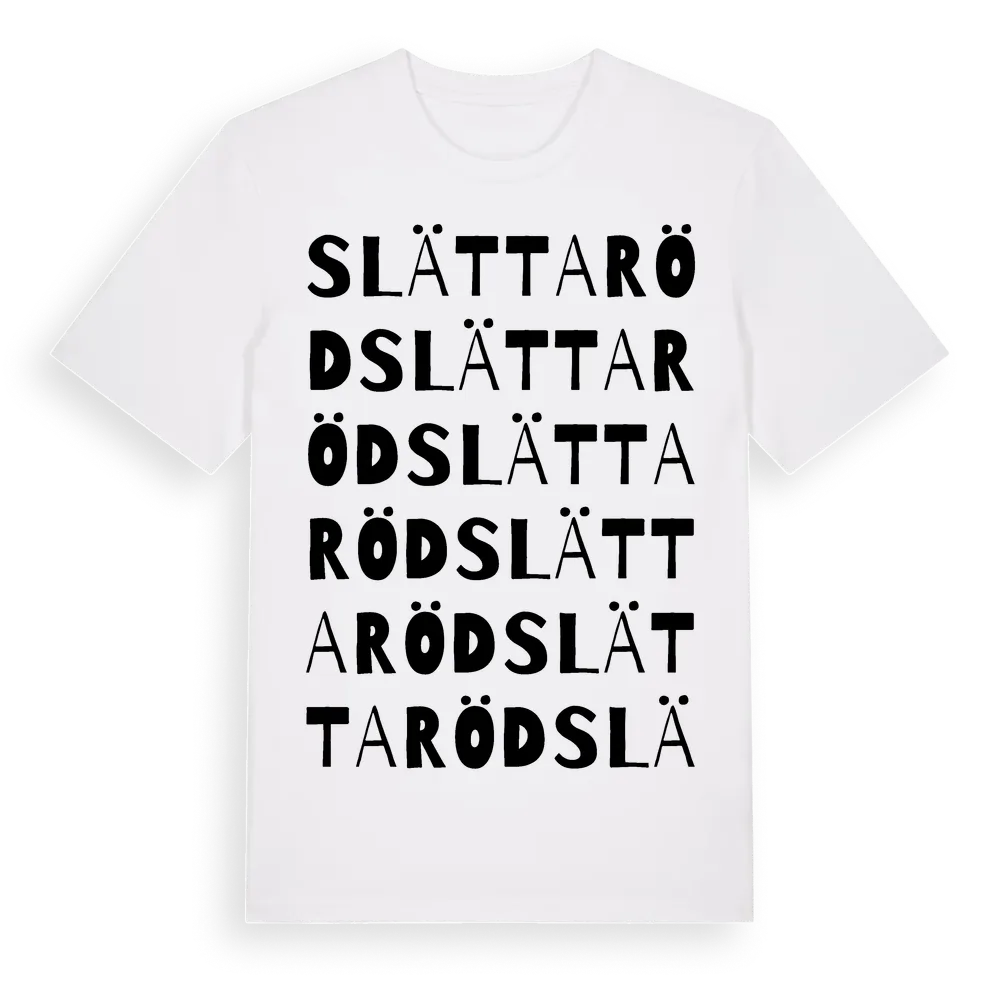 Slättaröd ordlek t-shirt är inspirerad av byn Slättaröd i Skåne län, Sverige. Tröjan är designad för dig som har en speciell koppling till platsen – oavsett om du bor här, har rötterna här eller bara älskar Slättaröd.