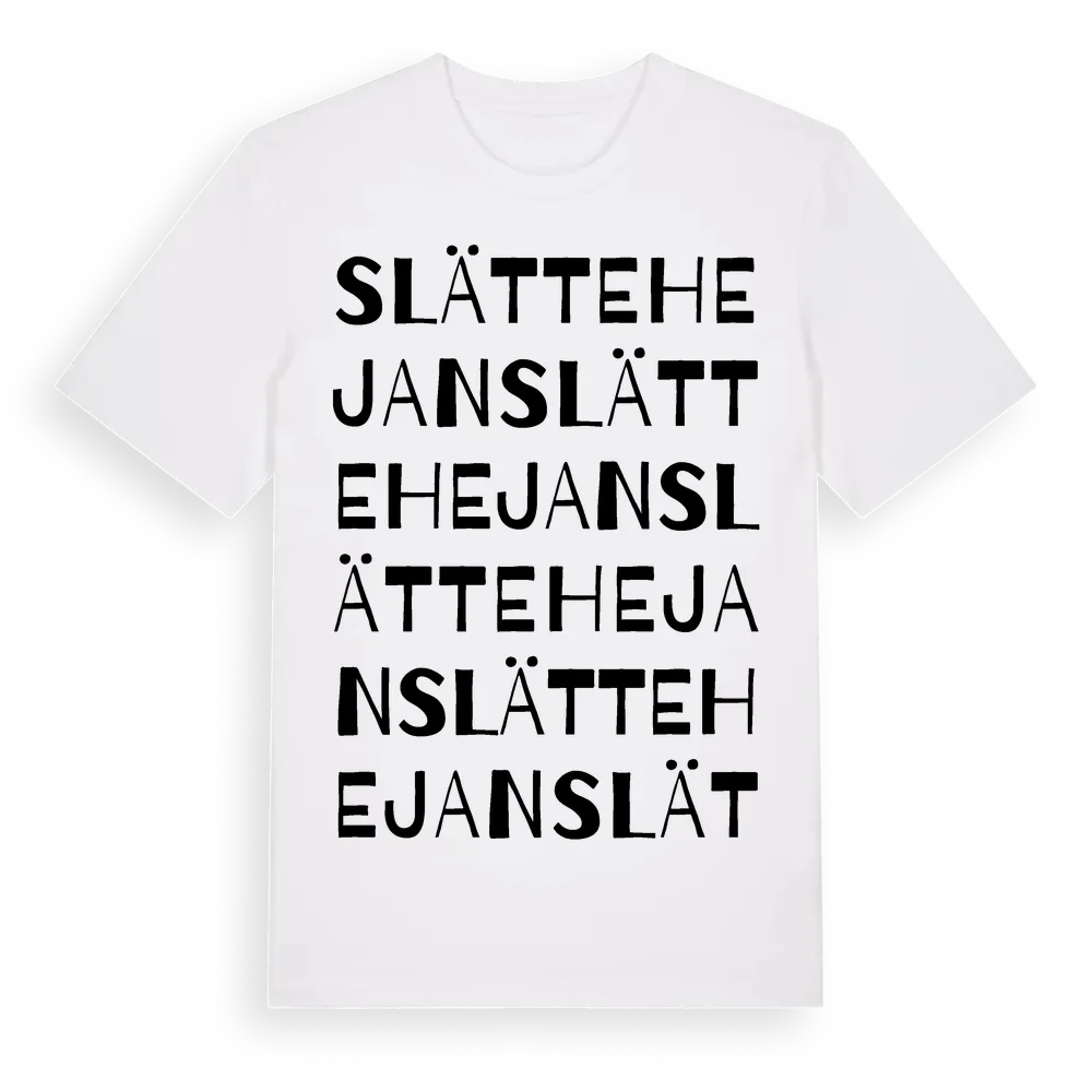 En ordlek byggd på Slättehejans namn. Subtilt och klurig – ett motiv som bara de som verkligen känner platsen fullt ut förstår. Premium bomull, unisex – från Slättehejan i Skåne län.