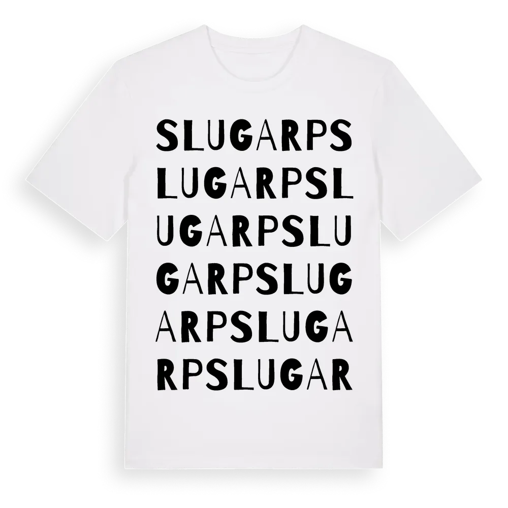 En ordlek byggd på Slugarps namn. Subtilt och klurig – ett motiv som bara de som verkligen känner platsen fullt ut förstår. Premium bomull, unisex – från Slugarp i Skåne län.