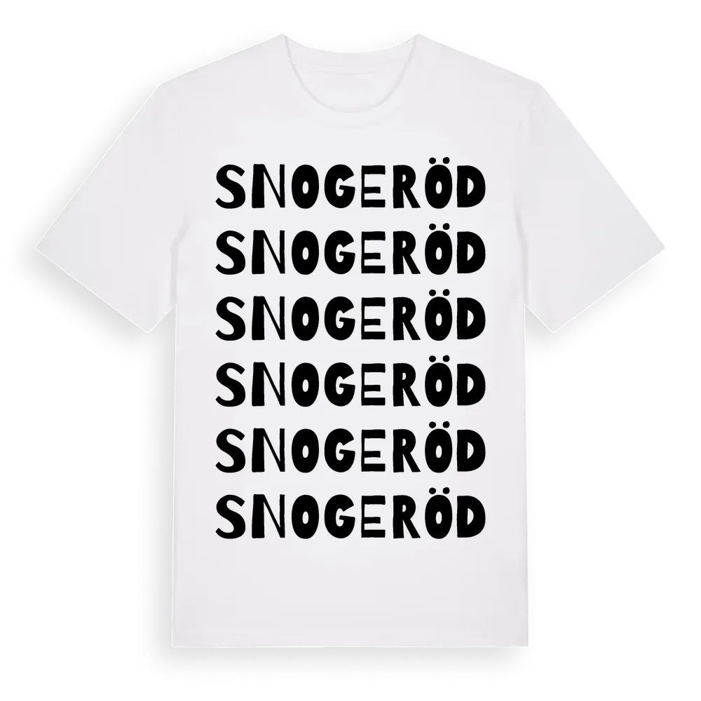 Snogeröd ordlek t-shirt är inspirerad av byn Snogeröd i Skåne län, Sverige. Tröjan är designad för dig som har en speciell koppling till platsen – oavsett om du bor här, har rötterna här eller bara älskar Snogeröd.