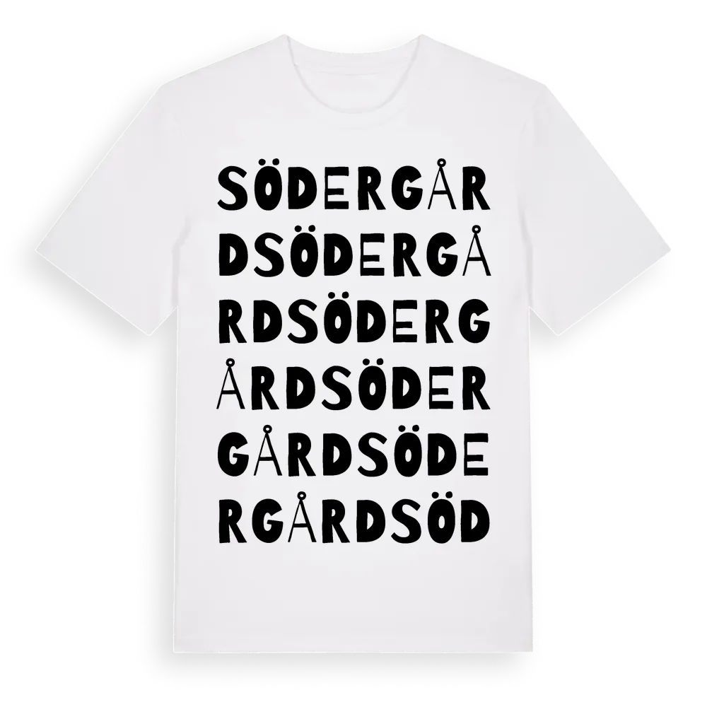 Södergård ordlek t-shirt är inspirerad av byn Södergård i Skåne län, Sverige. Tröjan är designad för dig som har en speciell koppling till platsen – oavsett om du bor här, har rötterna här eller bara älskar Södergård.