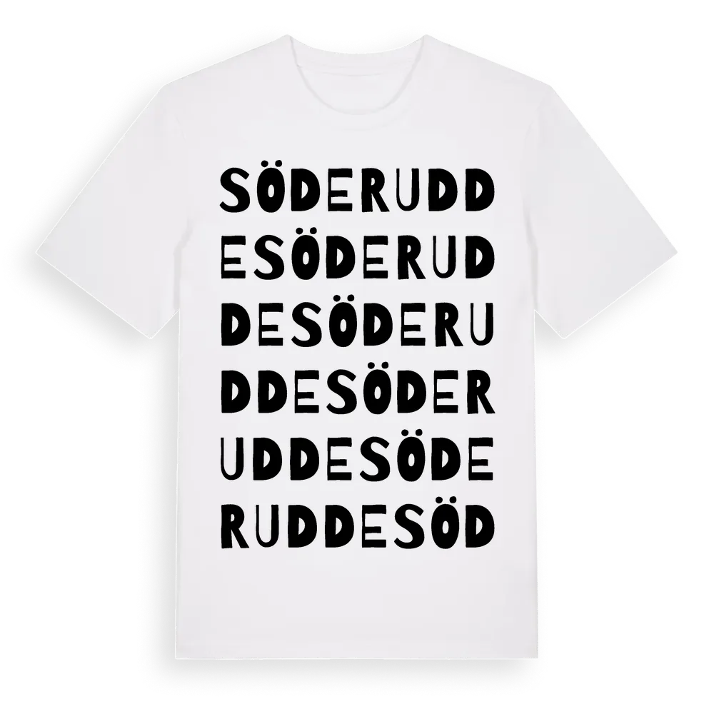 Söderudde ordlek t-shirt är inspirerad av Söderudde i Skåne län, Sverige. Tröjan är designad för dig som har en speciell koppling till platsen – oavsett om du bor här, har rötterna här eller bara älskar Söderudde.