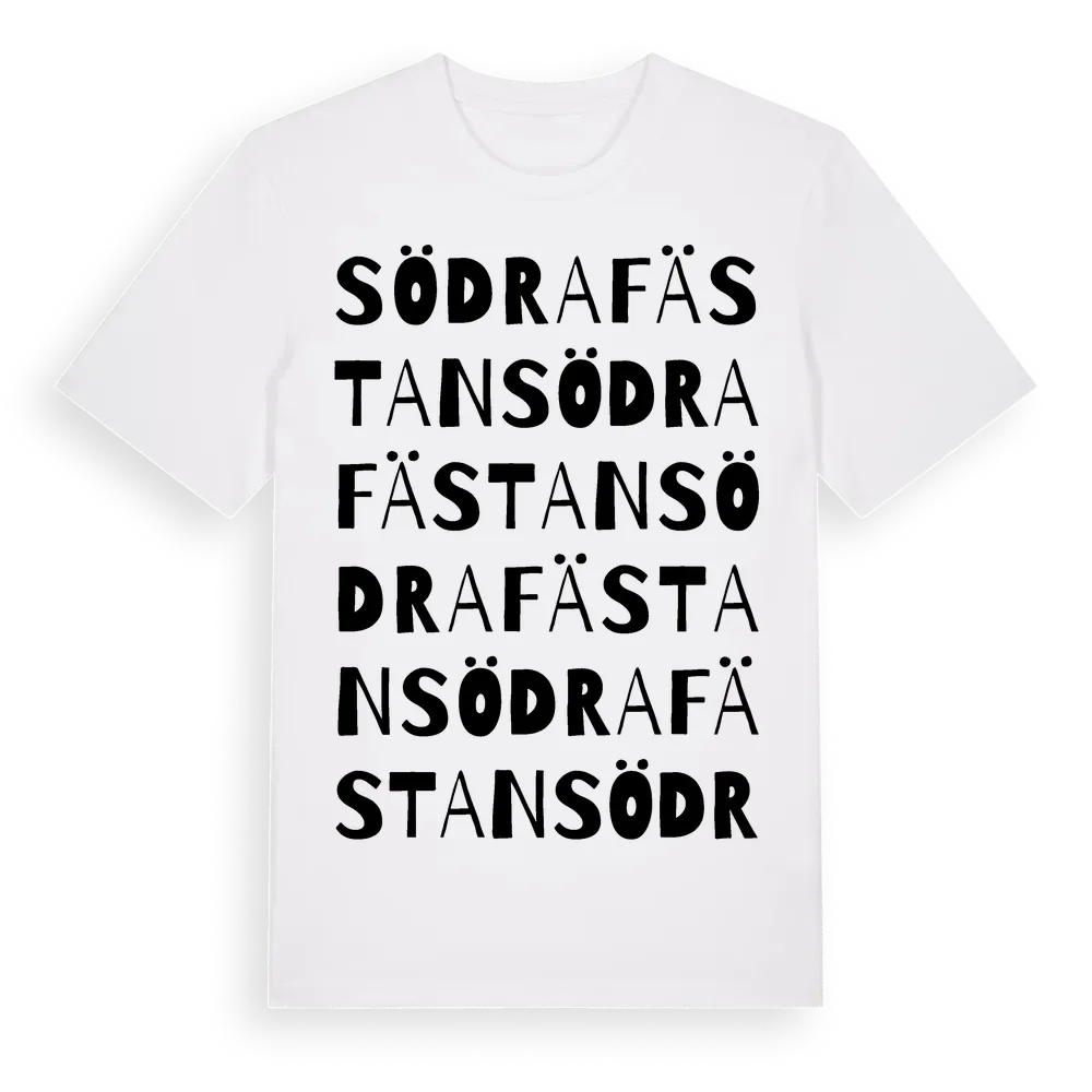Södra Fästan ordlek t-shirt är inspirerad av Södra Fästan i Skåne län, Sverige. Tröjan är designad för dig som har en speciell koppling till platsen – oavsett om du bor här, har rötterna här eller bara älskar Södra Fästan.
