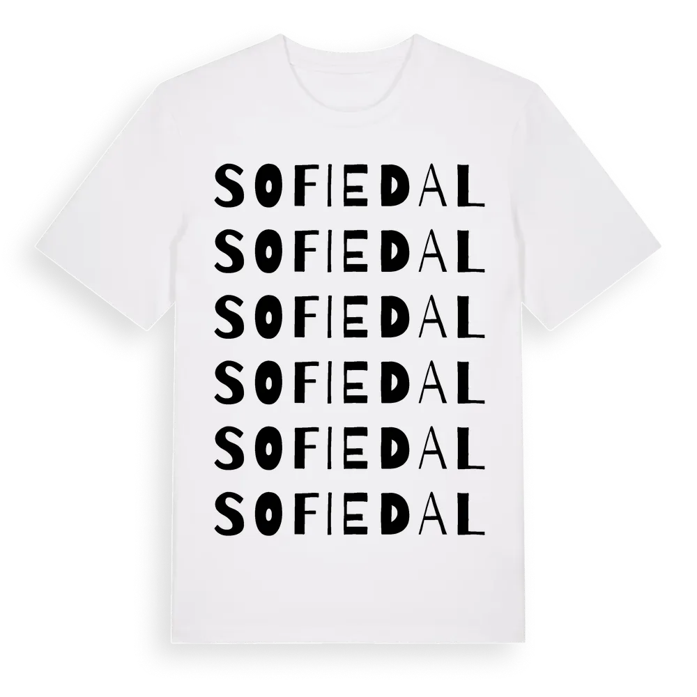 Sofiedal ordlek t-shirt är inspirerad av Sofiedal i Skåne län, Sverige. Tröjan är designad för dig som har en speciell koppling till platsen – oavsett om du bor här, har rötterna här eller bara älskar Sofiedal.