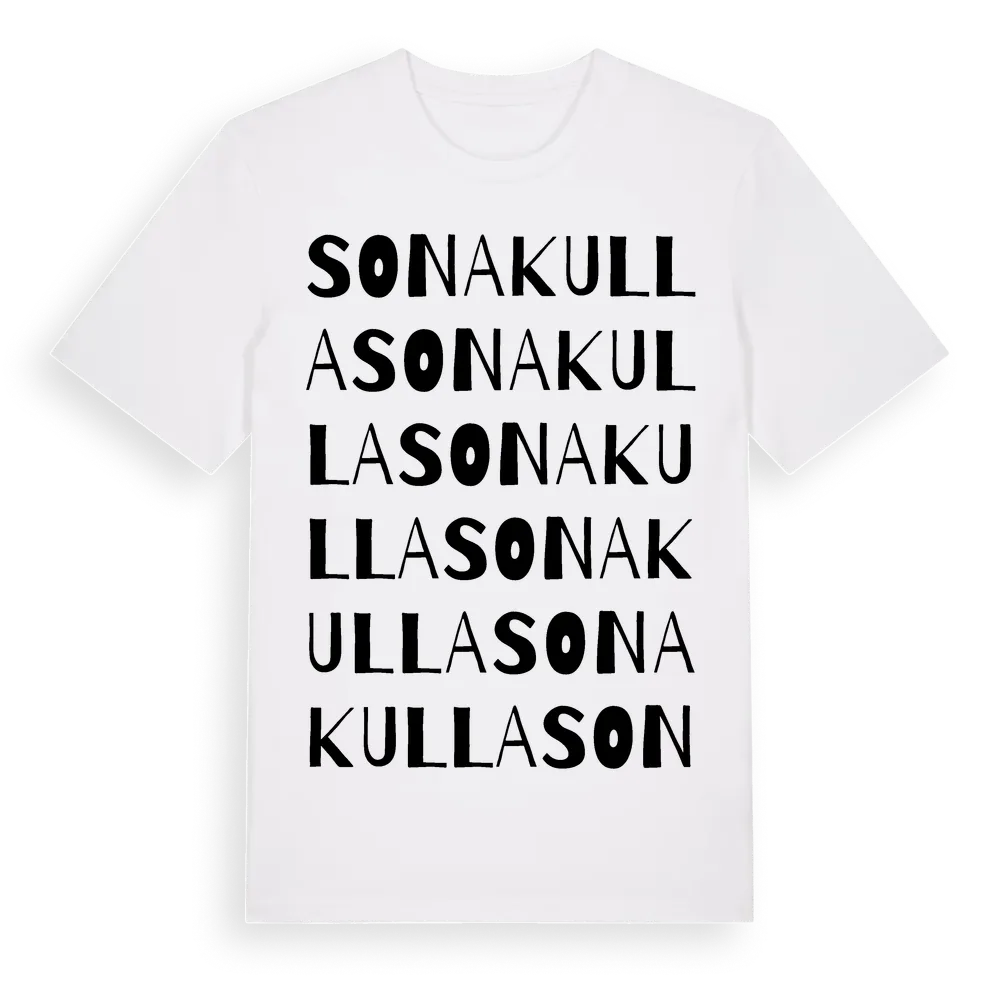 Sonakulla ordlek t-shirt är inspirerad av Sonakulla i Skåne län, Sverige. Tröjan är designad för dig som har en speciell koppling till platsen – oavsett om du bor här, har rötterna här eller bara älskar Sonakulla.