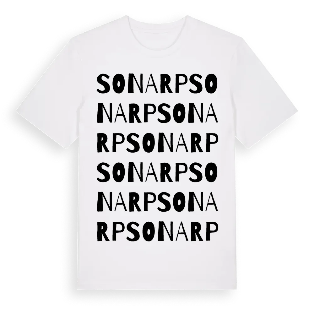 Sonarp ordlek t-shirt är inspirerad av byn Sonarp i Skåne län, Sverige. Tröjan är designad för dig som har en speciell koppling till platsen – oavsett om du bor här, har rötterna här eller bara älskar Sonarp.