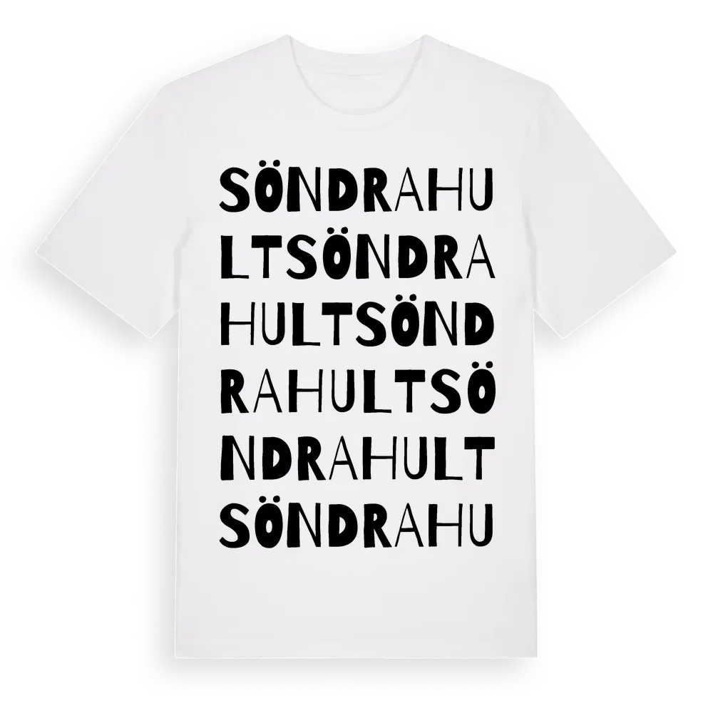 Söndrahult ordlek t-shirt är inspirerad av byn Söndrahult i Skåne län, Sverige. Tröjan är designad för dig som har en speciell koppling till platsen – oavsett om du bor här, har rötterna här eller bara älskar Söndrahult.