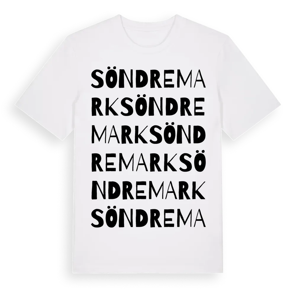 Söndremark ordlek t-shirt är inspirerad av byn Söndremark i Skåne län, Sverige. Tröjan är designad för dig som har en speciell koppling till platsen – oavsett om du bor här, har rötterna här eller bara älskar Söndremark.