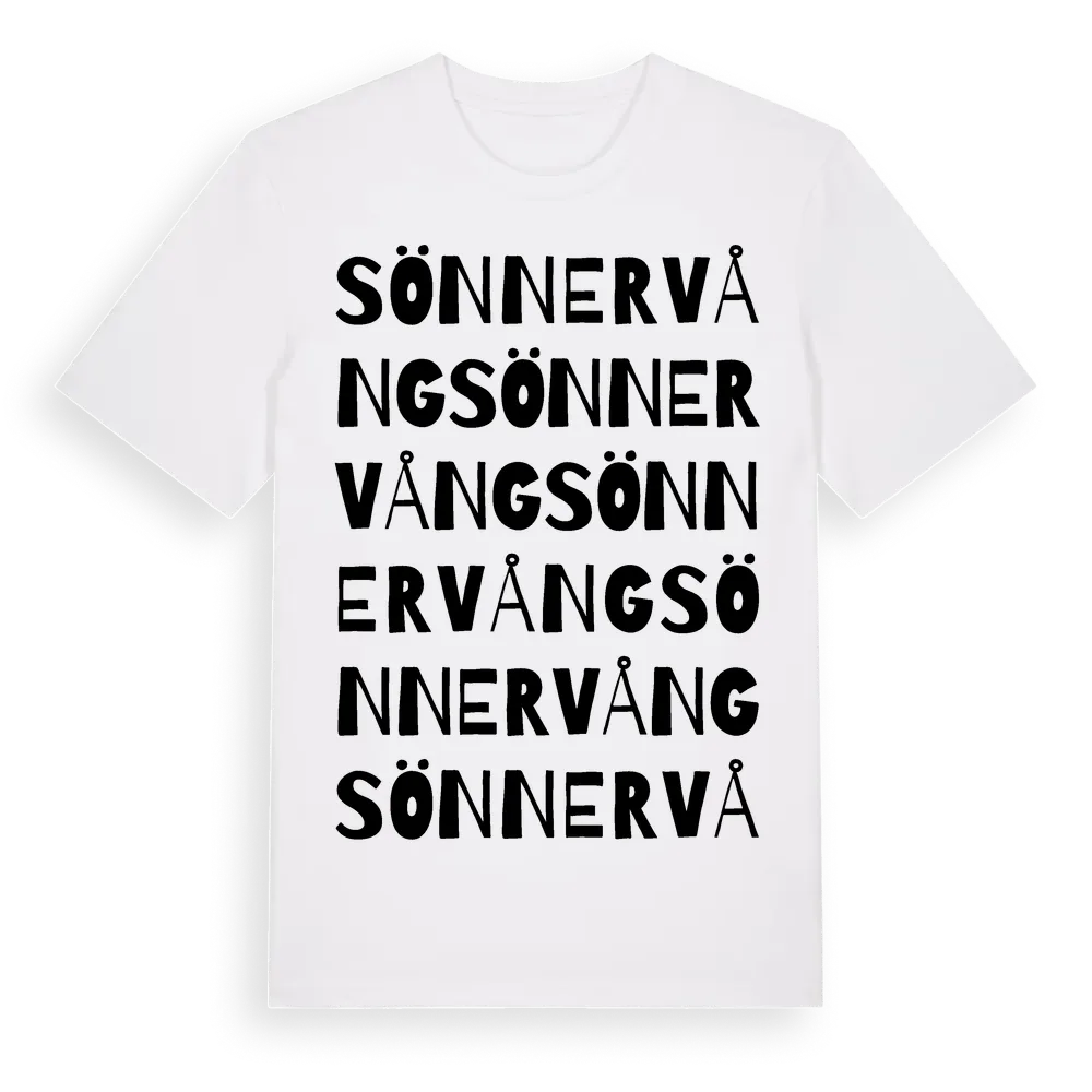 Sönnervång ordlek t-shirt är inspirerad av byn Sönnervång i Skåne län, Sverige. Tröjan är designad för dig som har en speciell koppling till platsen – oavsett om du bor här, har rötterna här eller bara älskar Sönnervång.