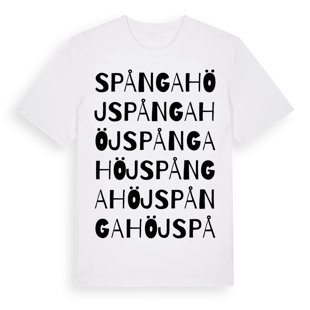 Spångahöj ordlek t-shirt är inspirerad av Spångahöj i Skåne län, Sverige. Tröjan är designad för dig som har en speciell koppling till platsen – oavsett om du bor här, har rötterna här eller bara älskar Spångahöj.