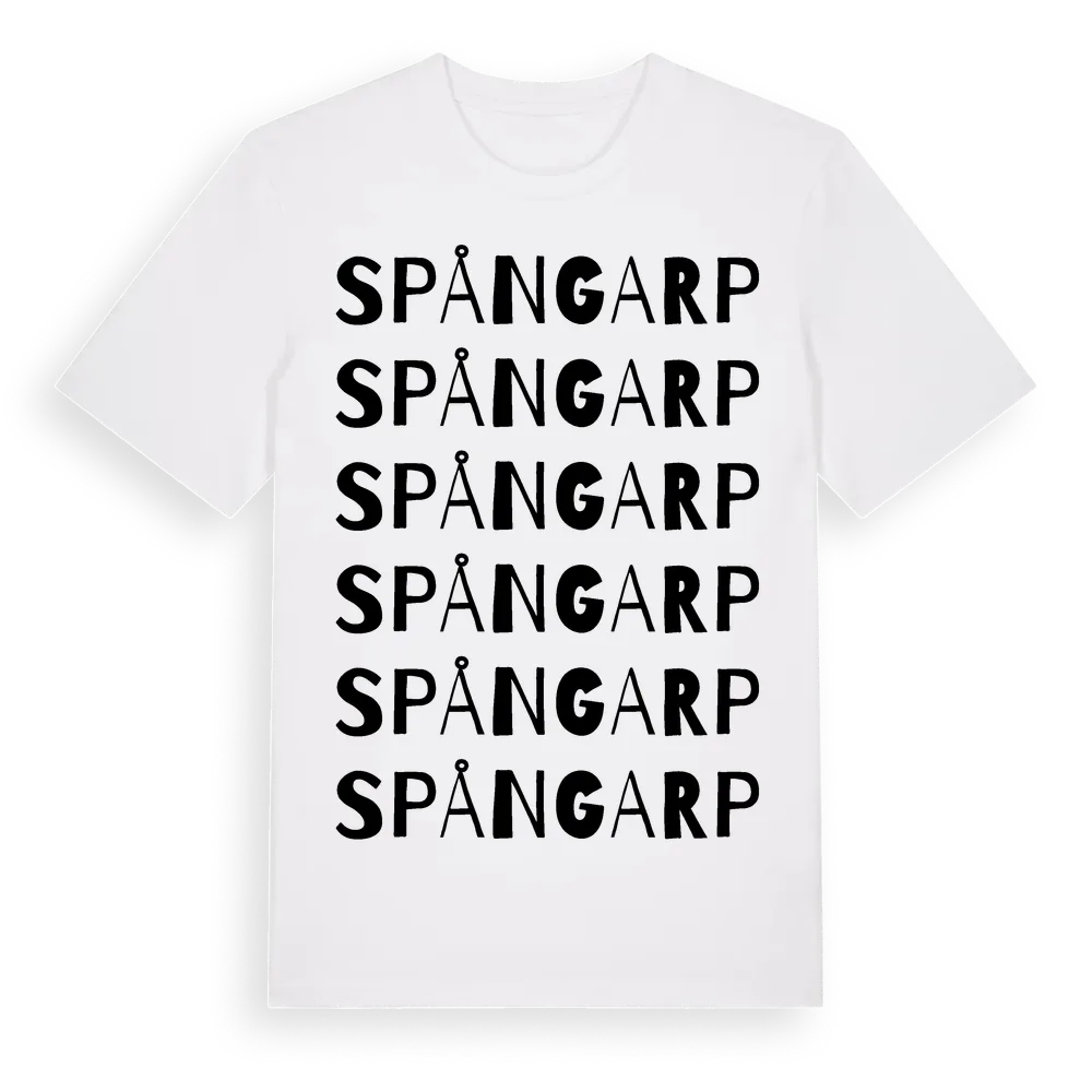 Spångarp ordlek t-shirt är inspirerad av byn Spångarp i Skåne län, Sverige. Tröjan är designad för dig som har en speciell koppling till platsen – oavsett om du bor här, har rötterna här eller bara älskar Spångarp.