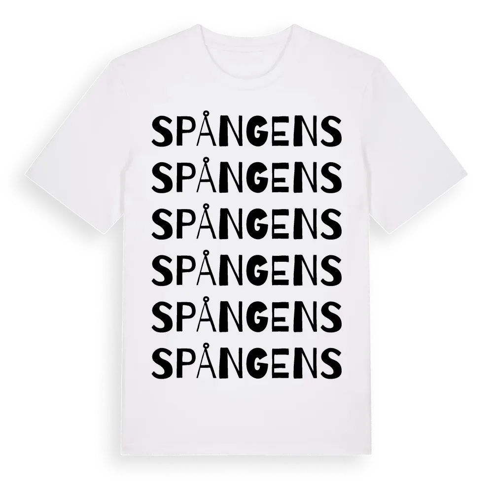 En ordlek byggd på Spångenss namn. Subtilt och klurig – ett motiv som bara de som verkligen känner platsen fullt ut förstår. Premium bomull, unisex – från byn Spångens i Skåne län.