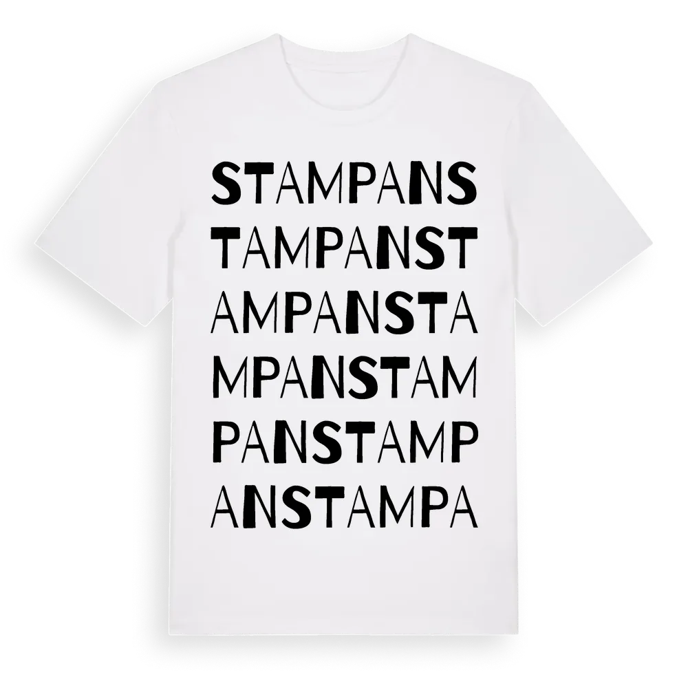 Stampan ordlek t-shirt är inspirerad av Stampan i Skåne län, Sverige. Tröjan är designad för dig som har en speciell koppling till platsen – oavsett om du bor här, har rötterna här eller bara älskar Stampan.