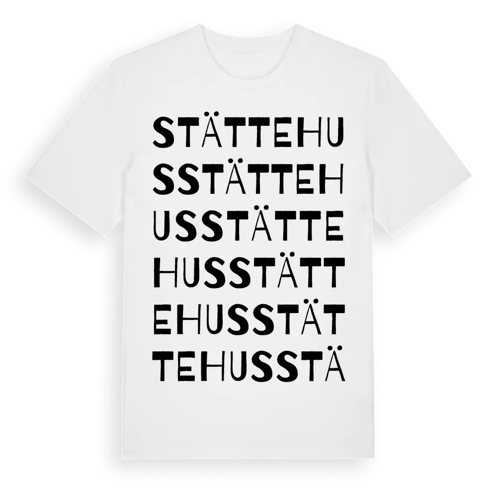 Stättehus ordlek t-shirt är inspirerad av stadsdelen Stättehus i Skåne län, Sverige. Tröjan är designad för dig som har en speciell koppling till platsen – oavsett om du bor här, har rötterna här eller bara älskar Stättehus.
