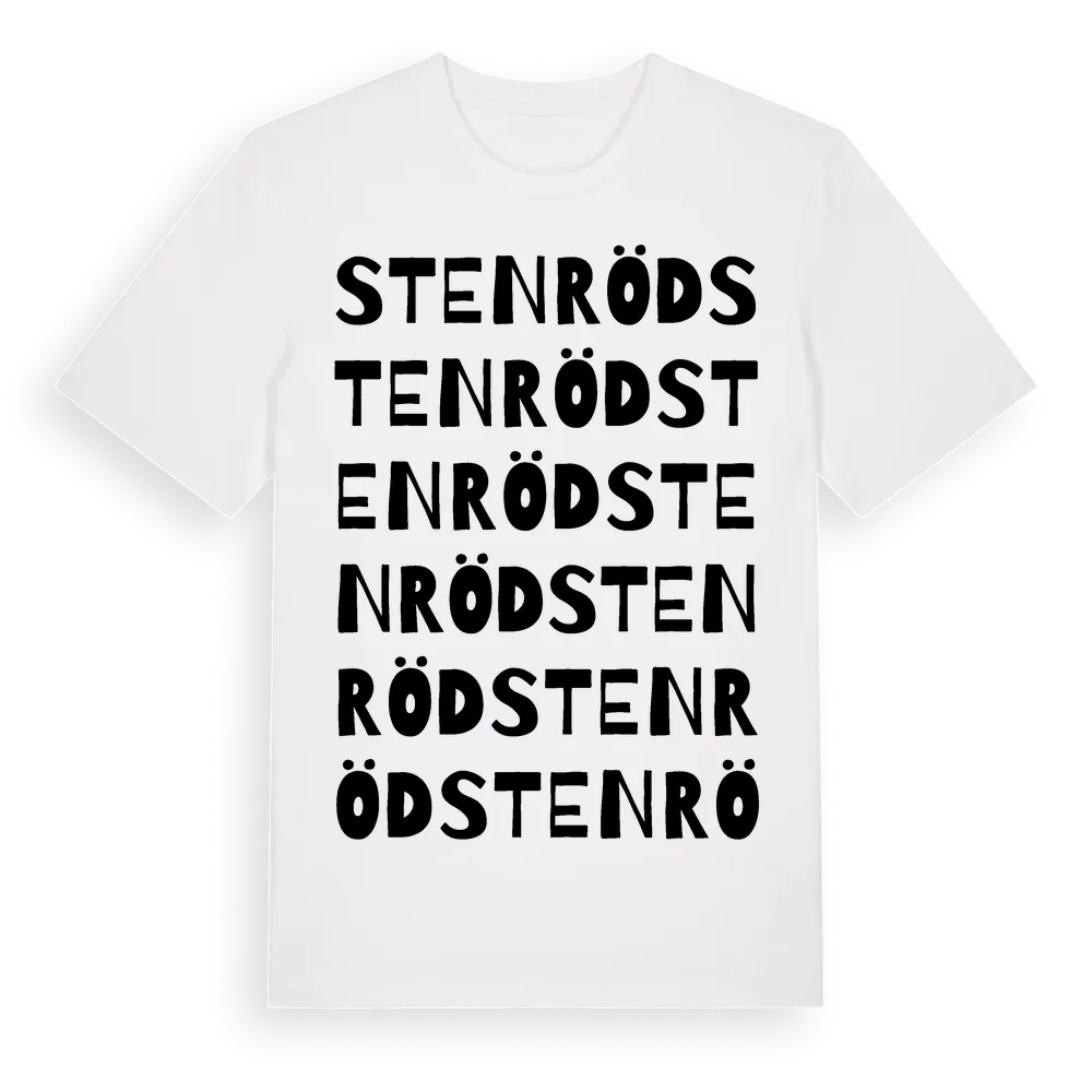Stenröd ordlek t-shirt är inspirerad av Stenröd i Skåne län, Sverige. Tröjan är designad för dig som har en speciell koppling till platsen – oavsett om du bor här, har rötterna här eller bara älskar Stenröd.